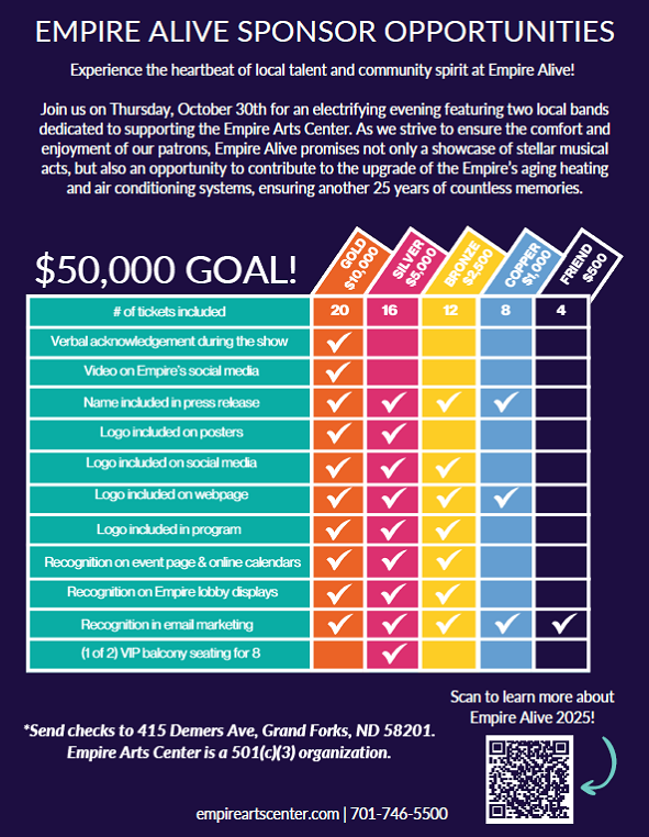 Come and experience the most beautiful theater in the area, The Empire Arts Center. Join us to dance the night away in support of the Empire. You won’t want to miss this great community event at Empire Alive 2025!